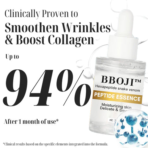 BBOJI™ Hexapeptide Snake Venom Peptide Essence is specifically formulated to combat wrinkles and fine lines, effectively reversing the signs of aging. By naturally stimulating collagen production, it enhances skin elasticity and helps prevent the formation of future wrinkles. The tightening effect of this essence lifts and plumps the skin, promoting a youthful and rejuvenated appearance. Enriched with potent peptides and nourishing ingredients, it penetrates deeply to hydrate and firm the skin from within.
