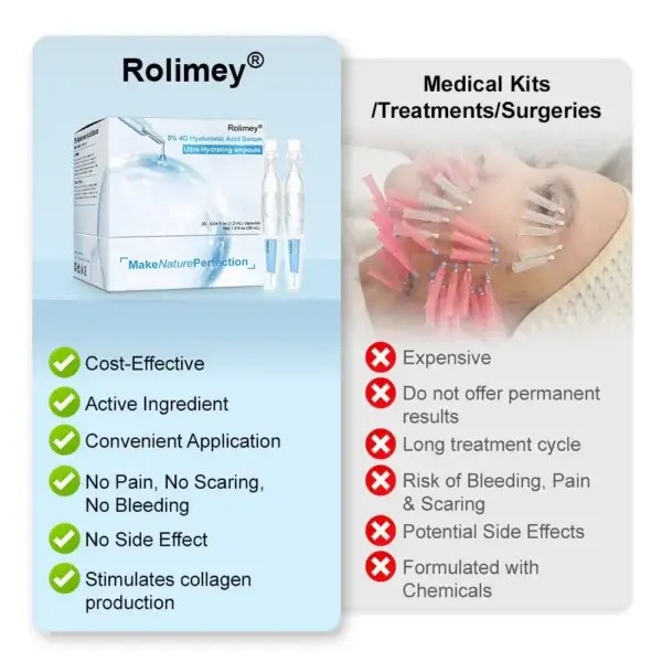 We have always adhered to the philosophy of ‘No needles, no incisions, and no downtime.’ It’s time to turn back the clock — and our Rolimey® 3% 4D Hyaluronic Acid Serum ampoules are here to do just that. Designed to meet the unique needs of Canadian skin, this powerful anti-aging formula works in just 3 minutes a day to smooth away wrinkles, erase fine lines, and bring your skin back to life with every use.
