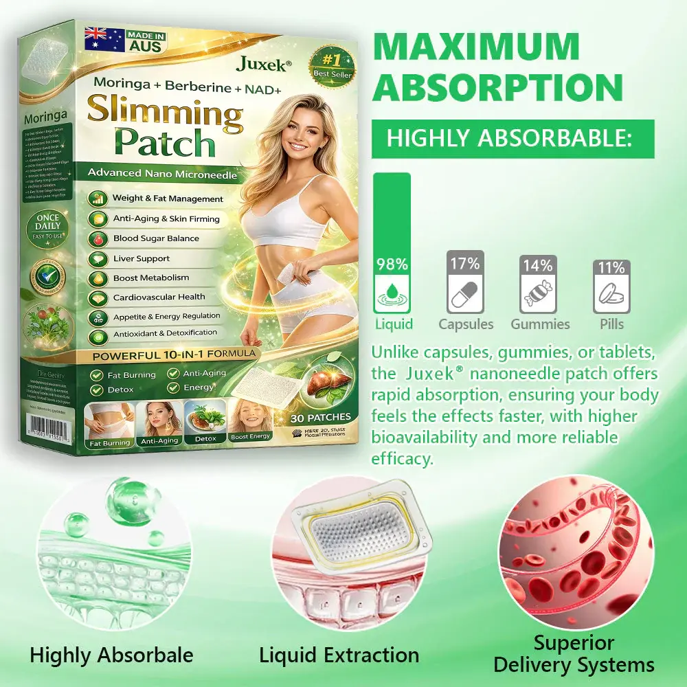 Scientifically Formulated: 𝐉𝐮𝐱𝐞𝐤® 𝑩𝒆𝒓𝑏𝘦𝘳𝑖𝗇𝒆 𝟔-𝗶𝙣-𝟏 𝑁𝑎𝑛𝑜 𝘔𝘪𝘤𝘳𝘰𝘯𝘦𝘦𝘥𝘭𝘦 𝖯𝚊𝗍𝖼𝗁 is scientifically developed to maximize its gastric-emptying delay effect — without drugs, surgery, or intense exercise — offering natural weight loss while also addressing post-weight-loss skin sagging issues.