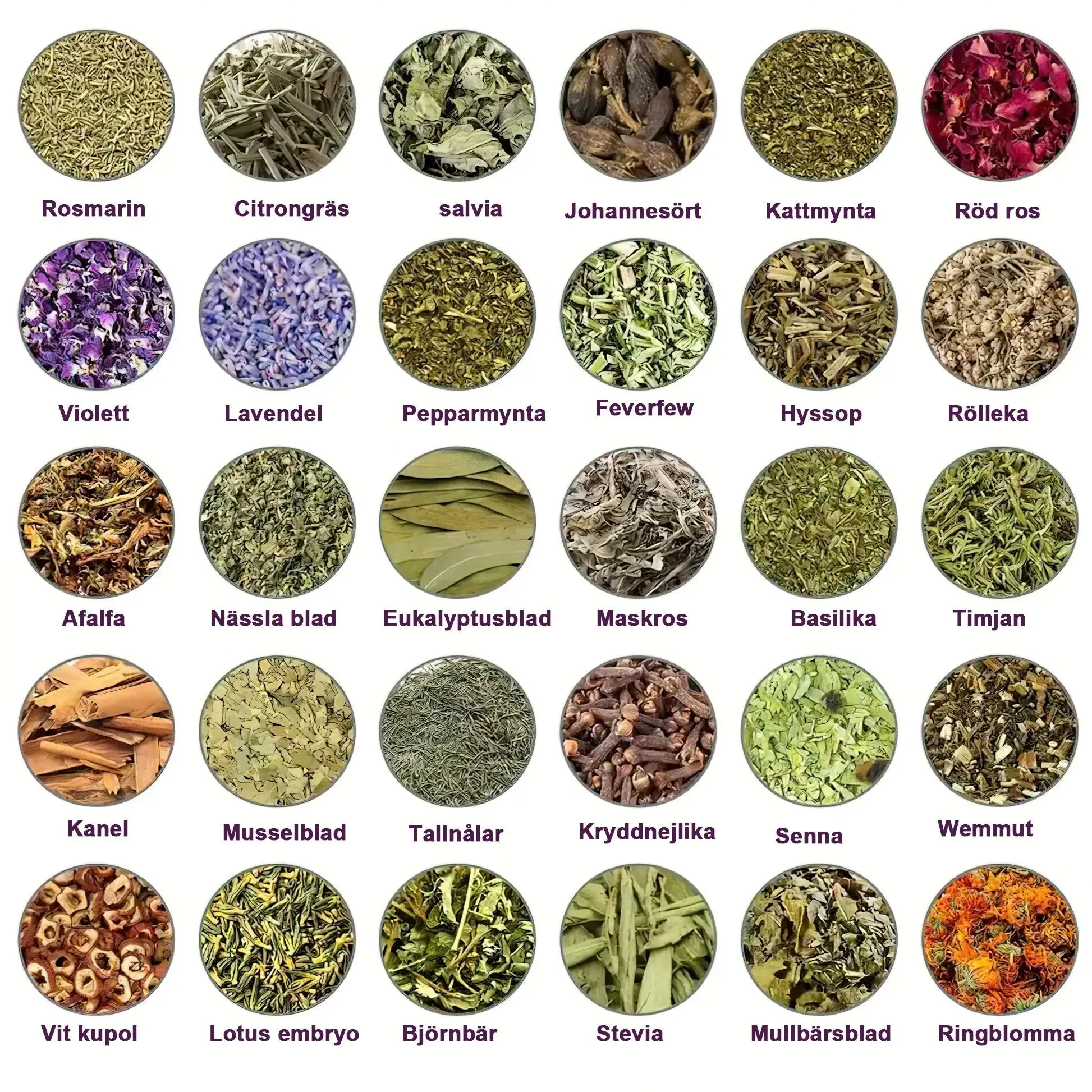These 30 herbal ingredients work synergistically to provide a wide range of health benefits, including reducing inflammation, relieving itching, and providing pain relief. Key herbs such as rosemary, peppermint, and eucalyptus leaves boost metabolism and improve digestion, accelerating energy expenditure and fat loss, while dandelion and senna have powerful diuretic and detoxifying properties that help reduce bloating and maintain weight. Lemongrass, thyme, and cinnamon, rich in antioxidants, regulate blood sugar and fat metabolism, promoting healthy weight control. In addition to improving blood and lymphatic circulation and aiding in toxin elimination, calendula and red rose also have powerful anti-inflammatory properties that relieve skin itching and treat conditions such as athlete’s foot and rashes. Nettle leaves and alfalfa, rich in vitamins and minerals, strengthen the immune system, support metabolism, and help the body fight external inflammation. Furthermore, cloves and bay leaves provide natural pain relief by alleviating muscle and joint pain, increasing blood circulation, and reducing inflammation. Together, these 30 herbs not only assist with weight loss but also provide comprehensive benefits, including reducing inflammation, soothing itching, relieving pain, and promoting overall health and physical well-being.