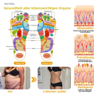 “I participated in a 5-week weight loss program and was able to easily lose weight from 120 kg to 60 kg! At first, I was skeptical about this product, but within just one week, I could clearly feel the changes in my body and the weight loss. I am very satisfied with the results of the foot bath. The detoxifying effect of the foot bath made my body feel incredibly light, the swelling in my legs visibly decreased, and my entire body was refreshed. What I particularly like about the foot bath beads is that they target stubborn fat. The many natural plant ingredients boost my metabolism and support fat burning, making it easier for me to stick to my weight loss goals without feeling deprived. Now, these foot bath beads have become an integral part of my daily life, helping me get my weight issues under control and live a healthier, more comfortable life.” – Emily Johnson