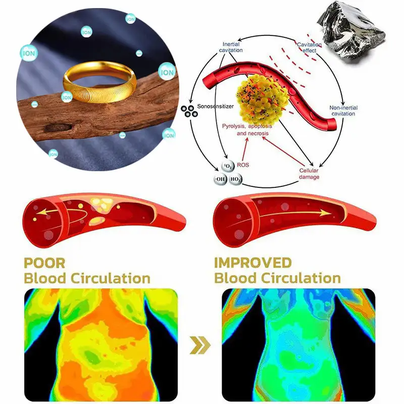 High-quality natural magnets are the main material of the ring. which can affect the human body’s magnetic field. promote lymphatic circulation. reduce swelling. help the body detoxify. and speed up metabolism. High-purity titanium metal is used as an auxiliary material to release titanium ions. which effectively helps relieve joint pain. promote blood circulation. and eliminate inflammation. We also innovatively add metal germanium to further enhance the effect of the ring. Germanium can improve the overall body. prevent aging. prevent cancer. regulate blood pressure. regulate chronic diseases such as the autonomic nervous system.