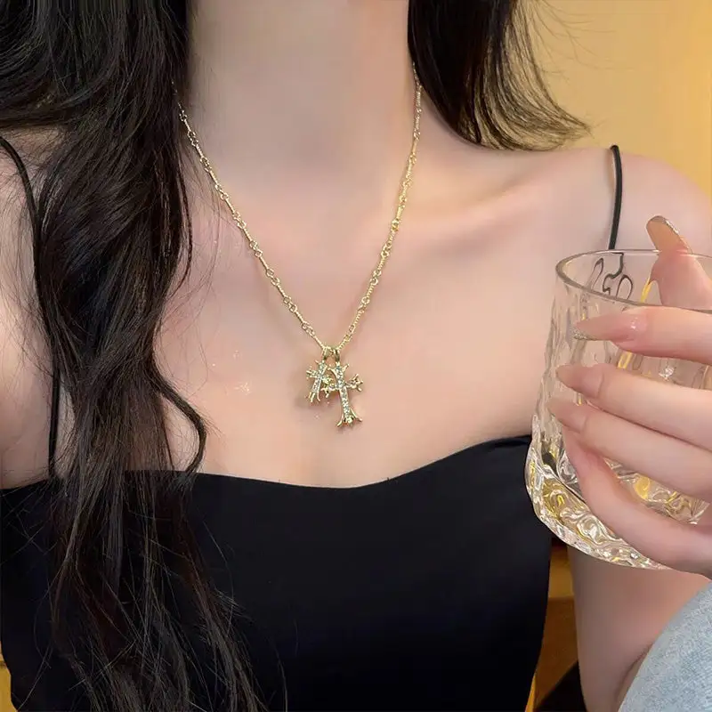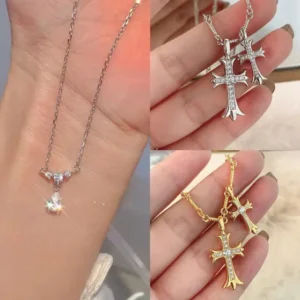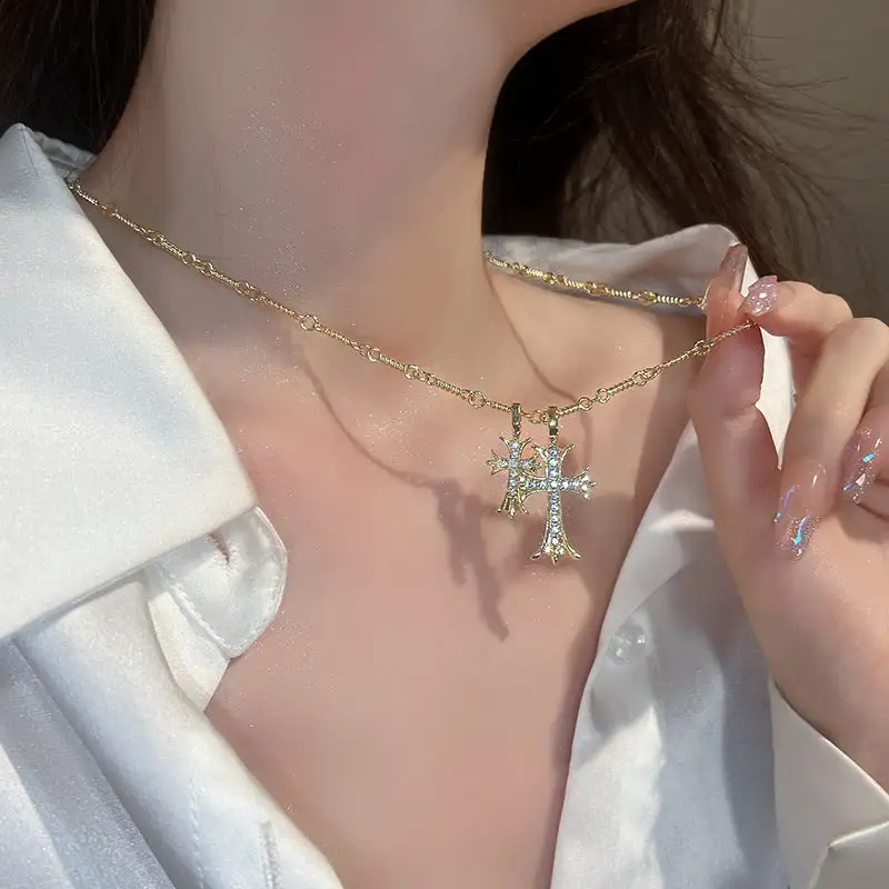 Lymphatic Magnetic Therapy Cross Design Diamond Necklace
