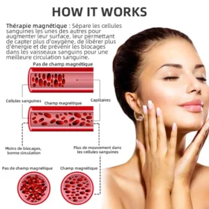 La thérapie par champ magnétique est considérée comme ayant des propriétés curatives en raison de sa teneur élevée en fer, qui stimule la circulation sanguine et lymphatique dans le corps. Nous savons qu’une mauvaise circulation sanguine empêche les cellules de recevoir les nutriments et l’oxygène dont elles ont besoin pour prospérer, ce qui entraîne un métabolisme lent et une accumulation de toxines.