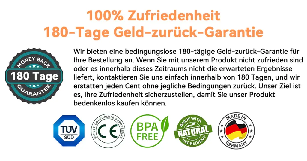 ✅ Garantie de qualité, avec une garantie de remboursement sans risque de 180 jours.