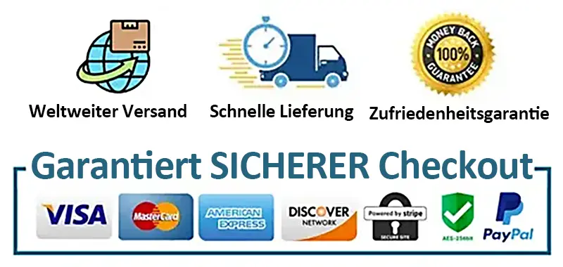 - 📦 Versicherter weltweiter Versand: Jede Bestellung enthält Echtzeit-Tracking-Details und Versicherungsschutz für den unwahrscheinlichen Fall, dass ein Paket während des Transports verloren geht oder gestohlen wird.
