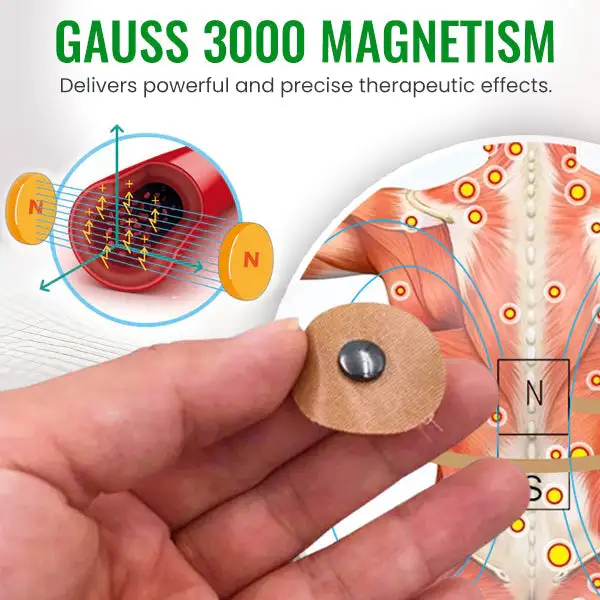 The AEXZR™ Magne-therapy Wellness Patch leverages advanced magnetic technology with a robust Gauss rating of 3000, delivering effective and targeted therapeutic benefits. This strong magnetic force improves blood circulation, which can lower blood pressure by enhancing vascular health and reducing strain on the heart.