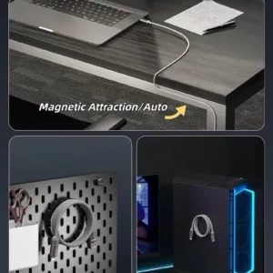 The built-in magnetic design allows the cable to coil neatly on its own, helping keep desks, bags, and cars clutter-free.