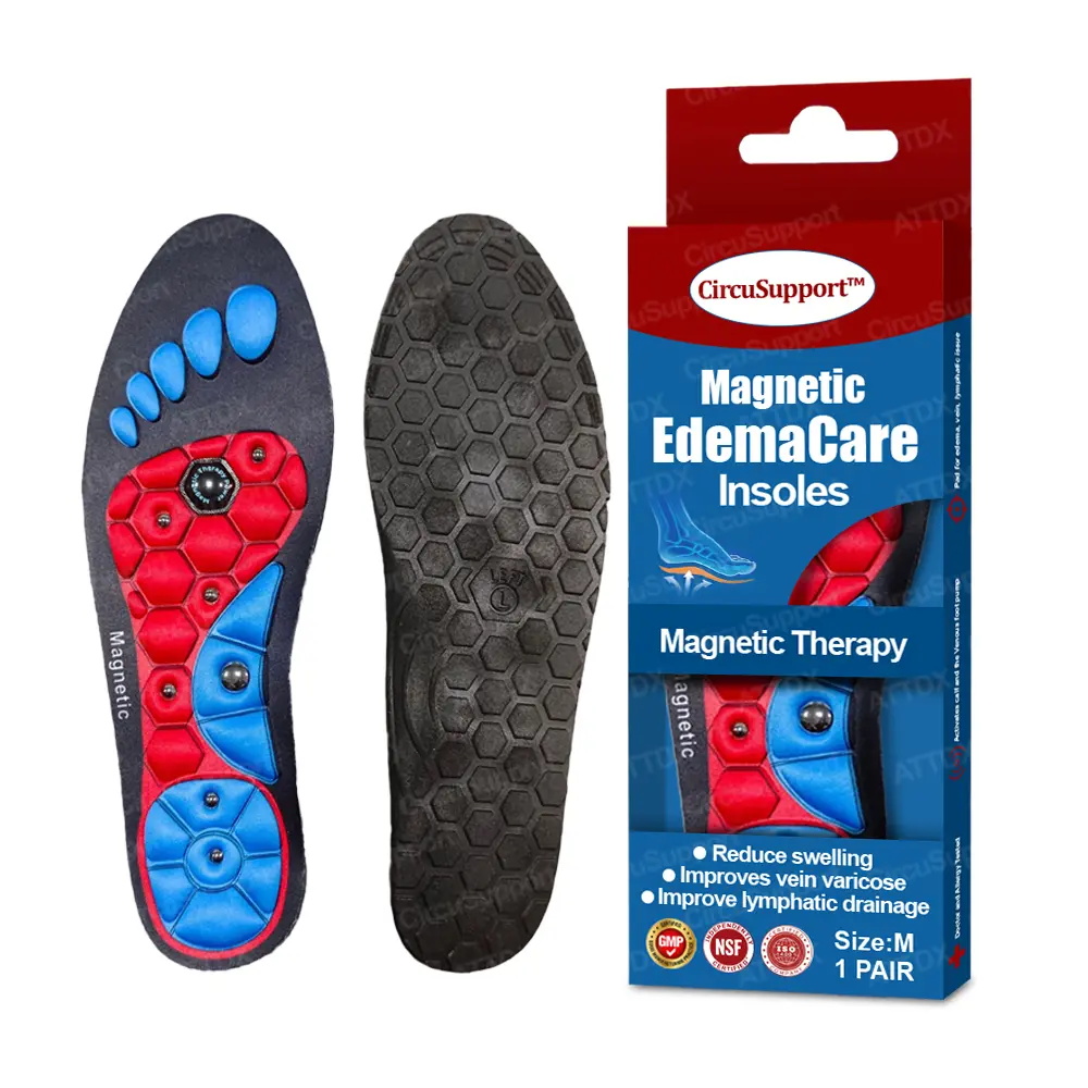 CircuSupport™ Magnetic EdemaCare Insoles combine advanced magnetic therapy and pressure point stimulation for a holistic approach to improving circulation. The targeted magnets generate an electromagnetic field that enhances blood flow, reducing fluid buildup and promoting faster healing in the lower limbs.