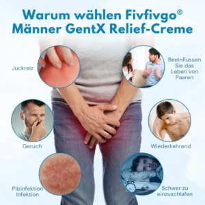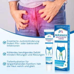 Fivfivgo® Männer GentX Relief-Creme nutzt eine fortschrittliche Penetrationstechnologie, um Beschwerden zu bekämpfen, die durch Bakterien, Pilze oder Barriereschäden verursacht werden. Natürliche Wirkstoffe wirken entzündungshemmend und abschwellend und stellen gleichzeitig die Feuchtigkeit und den Schutz der Haut wieder her.