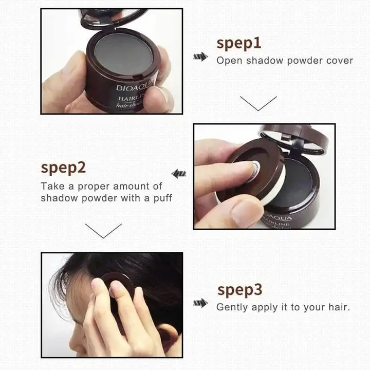 Works for shaping hairline and enrich hairline. You can cover up your hair in 1 minute.Use shading powder to be able to let gray hair root quickly regain vigor. Conceal between the root of the hair and the scalp.