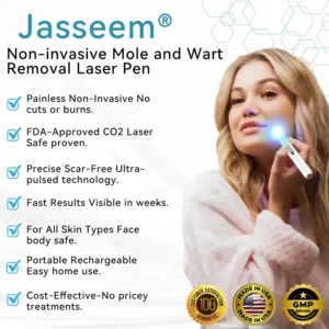 Say goodbye to moles, warts, dark spots, and blemishes with the 𝐉𝐚𝐬𝐬𝐞𝐞𝐦® Non-Invasive Mole and Wart Removal Laser Pen. Designed for effortless at-home use, this compact, lightweight device delivers professional-quality results in minutes. Experience visible skin improvement in just 2 weeks!
