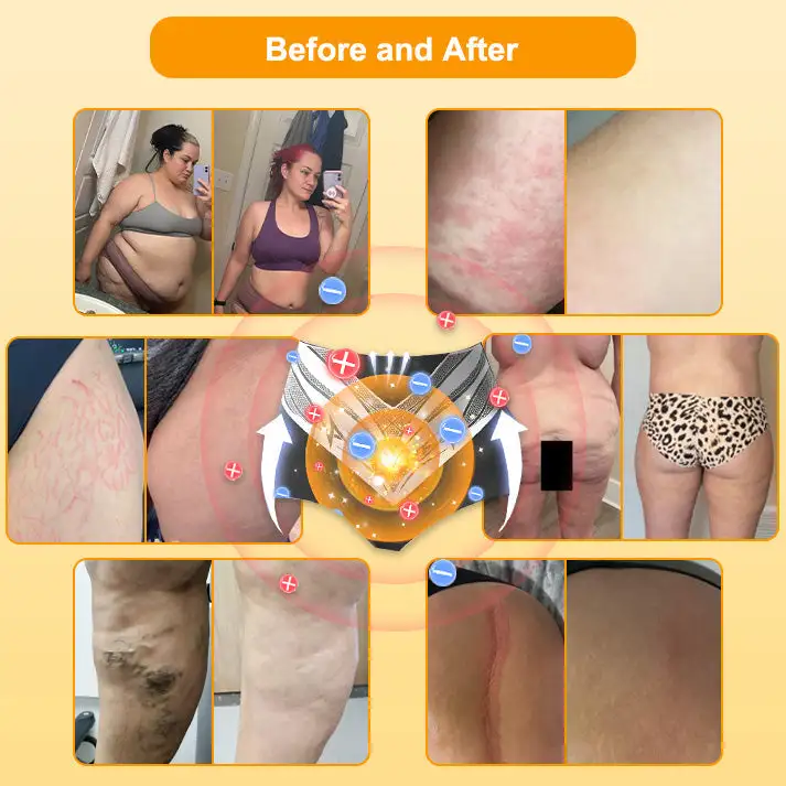 Scars and stretch marks from pregnancy or weight changes are visibly reduced with regular use of these shorts. FIR boosts collagen production. helping fade scars and improve skin elasticity. By the third week. negative ions accelerate skin regeneration and improve circulation. resulting in smoother. more even-toned skin. This dual-action method effectively fades scars and stretch marks.