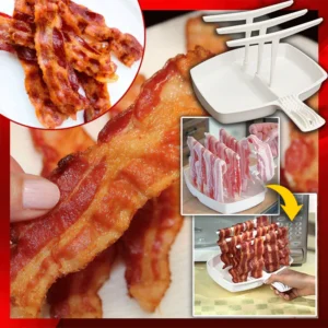 • Easy to use. The only way to cook bacon! This microwave bacon cooker cooks the bacon in the air and not in the fat. Simple and easy to use – hang the bacon over the bars, place one sheet of roller towel over the bacon and into the microwave.