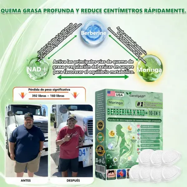 CareUplift® Moringa · Berberina × NAD+ 10-en-1 Advanced Nano Microneedle Patch