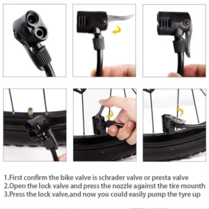 Our mini foot pump can achieve 120psi high pressure, which can quickly and effortlessly inflate the tire.