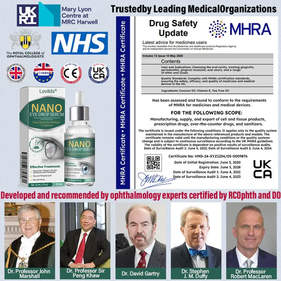 After four years of research, Dr. Stephen R. Slade and the Royal College of Ophthalmologists introduced a treatment using advanced nanotechnology for age-related eye diseases. This method utilizes a nano drug delivery system to precisely deliver ingredients to the eye, significantly improving vision. According to a study involving 80,000 participants, 96% of users experienced improved vision, with symptoms of presbyopia and cataracts greatly reduced or eliminated. This innovation enhances the drug’s absorption efficiency and therapeutic effects, offering a new solution for eye health in older adults.
