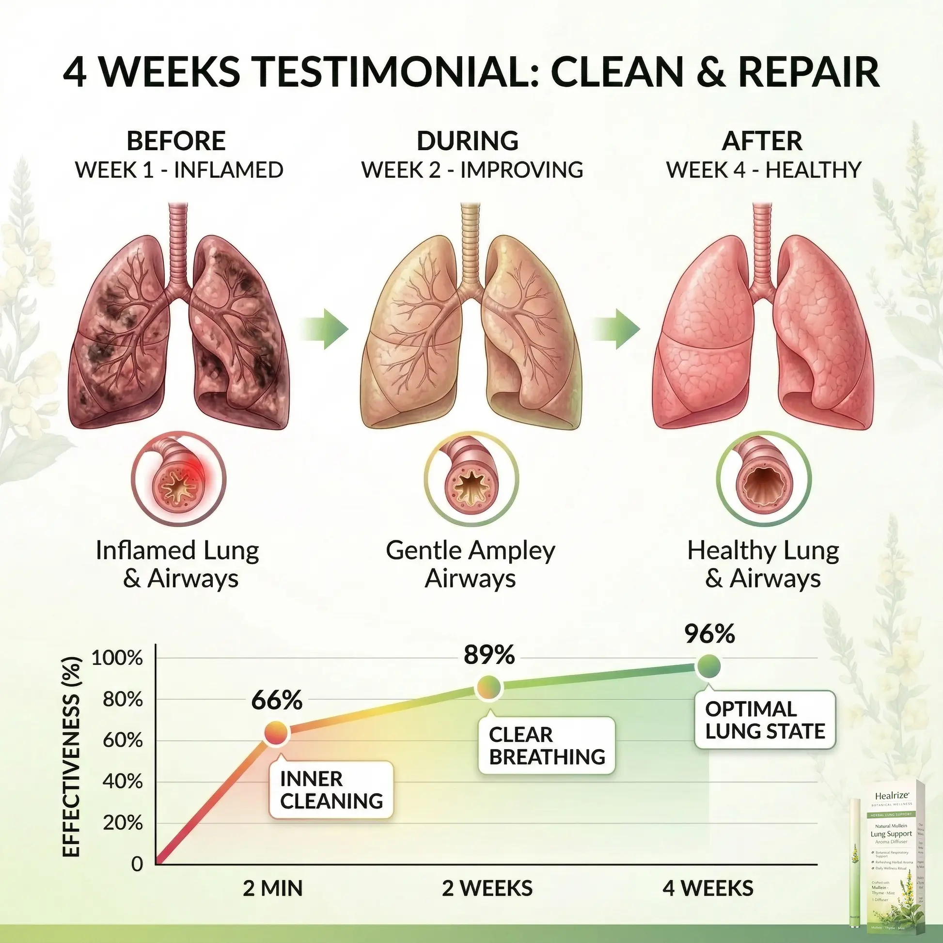 By 4 weeks, deep lung recovery begins 💨 — mucosal lining regenerates, airways open fully, and long-term respiratory health is restored. Enjoy refreshed breathing, reduced fatigue, and a revitalized lung experience every day.