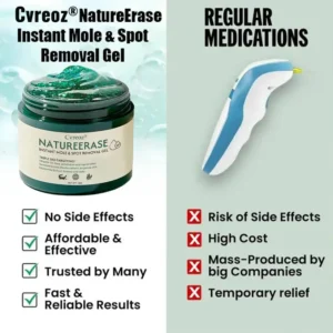 Whether you’re addressing stubborn blemishes or striving for a naturally flawless complexion, the Cvreoz® NatureErase Instant Mole & Spot Removal Gel delivers precision and lasting results every time.