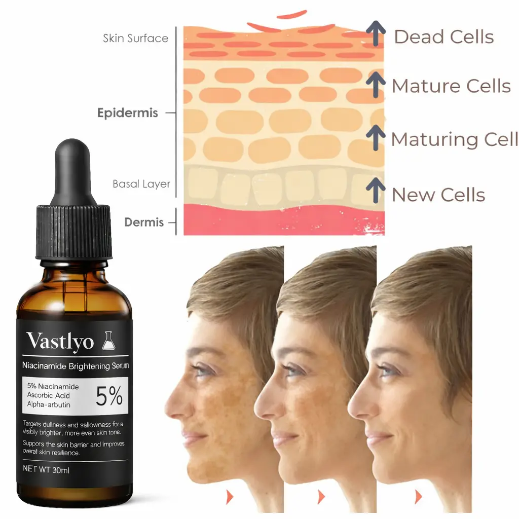 3. Vitamin C: Vitamin C is a powerful antioxidant that neutralizes free radicals and reduces damage to skin cells. It also inhibits the activity of tyrosinase, reducing melanin production and thereby brightening the skin. Additionally, Vitamin C promotes collagen synthesis, making the skin brighter and more even-toned.