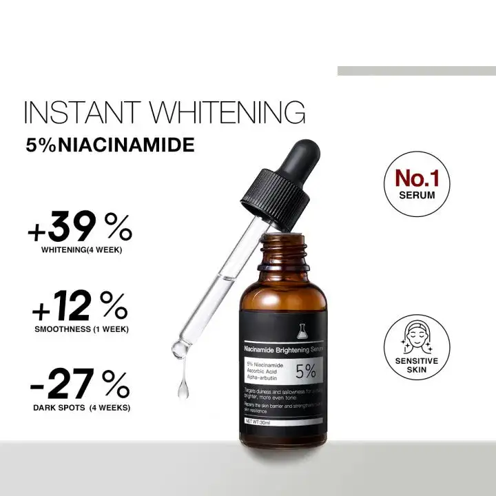 4. Niacinamide – Niacinamide can inhibit the transfer of melanin from melanocytes to keratinocytes, thereby reducing surface pigmentation. It also has anti-inflammatory properties, helping to reduce skin inflammation and redness, while enhancing the skin’s barrier function to maintain healthy and hydrated skin