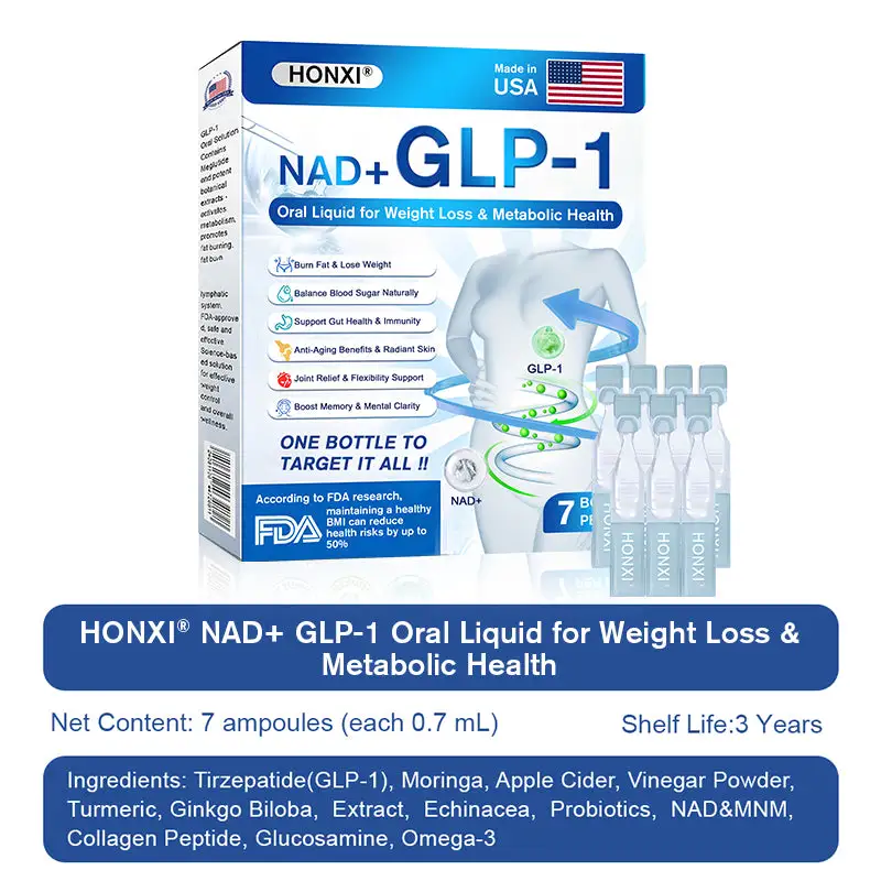 HONXI® NAD+ GLP-1 Oral ѕ𝑜𝑙𝑢𝑡𝑖𝑜𝑛 was developed by a team of over 30 experts in international endocrinology and diabetology after more than 3 years of research. It combines Tirzepatide with powerful herbal ingredients to boost metabolism, accelerate fat burning, and support digestive and lymphatic health. This oral solution has been approved by the U.S. Food and Drug Administration (FDA) for its safety and efficacy, offering a scientifically backed solution for weight loss and overall wellness.