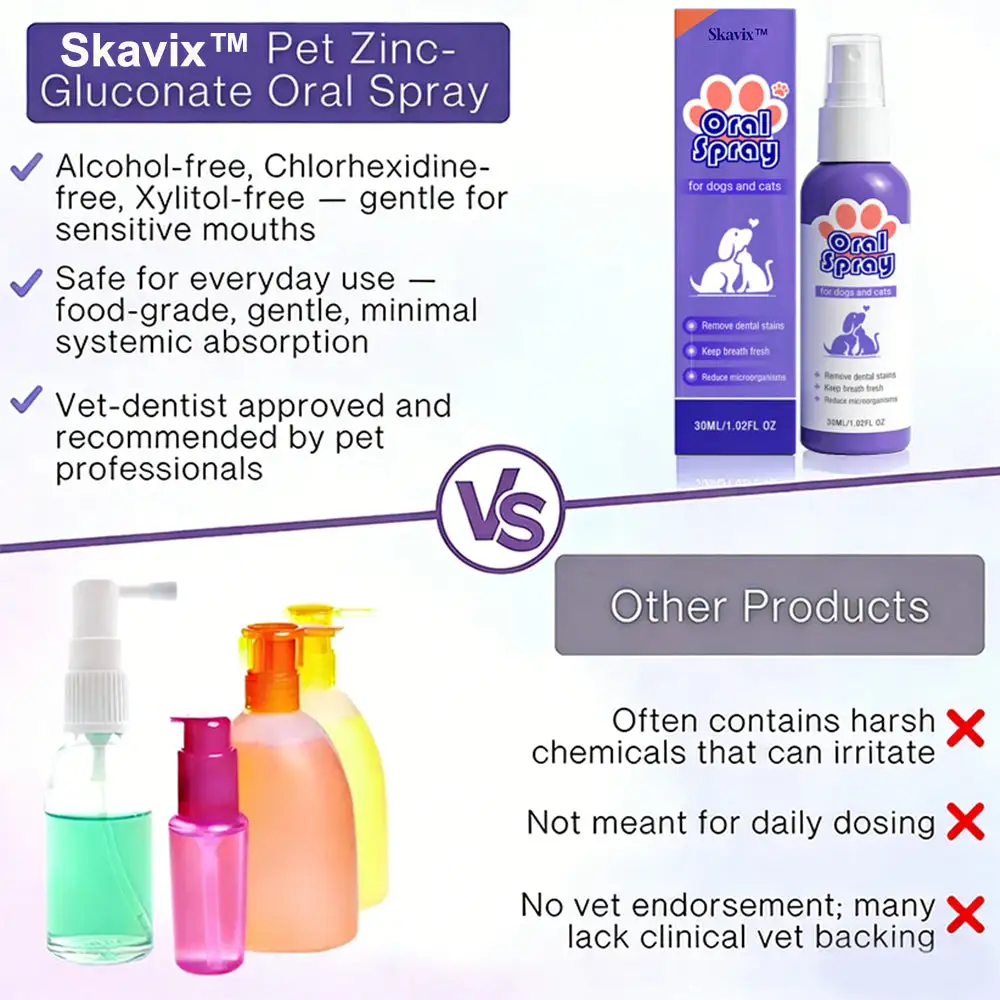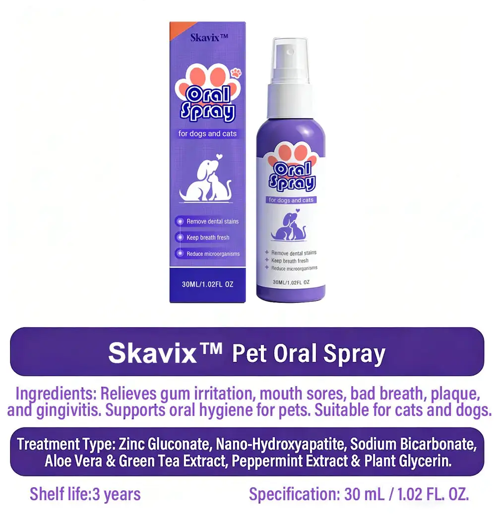 In a large-scale survey involving 800,000 pet owners, 96% reported that their pets’ dental health had significantly improved, with symptoms such as bad breath, tartar buildup, and gum irritation noticeably reduced or even completely resolved! Numerous real user testimonials prove that Skavix™ Pet Oral Spray – Freshen Breath, Remove Tartar & Promote Gum Regeneration, Stabilize Teeth (for Cats & Dogs) has truly brought remarkable changes to pet dental health.