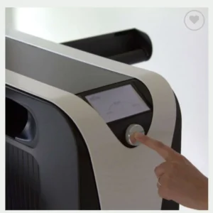 It looks like a rolling wardrobe. It’s flat enough to push up against a wall, and requires no plumbing hookup to operate, so you can move it when needed. The machine can hold and treat up to 12 items at once, all hung and aligned on specially designed effie hangers.
