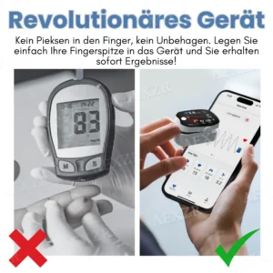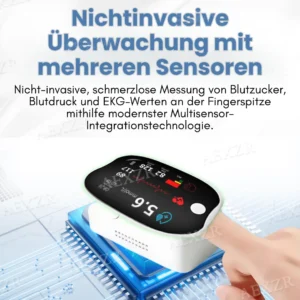 - Nicht-invasive Überwachung: Keine Fingerstiche oder Beschwerden, nur schnelle und einfache Messungen mit den Fingerspitzen.