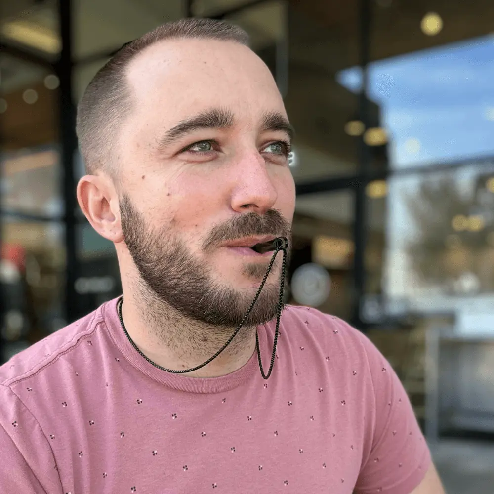 2. Exhale through the Sasillia breathing apparatus (simulates the sensation of smoking). Repeat 3-5 times until the taste goes away.