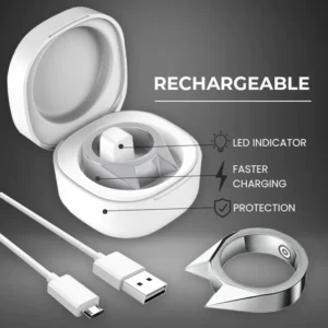 Rechargeable Stun Ring – It has a built-in plug for charging and a charging dock equipped with a high-quality internal battery that is fully rechargeable. The battery can remain charged for 30-45 days unless you use it. Cables are provided in standard outlets which allows hassle free charging, so you don’t need to purchase any expensive batteries all the time.