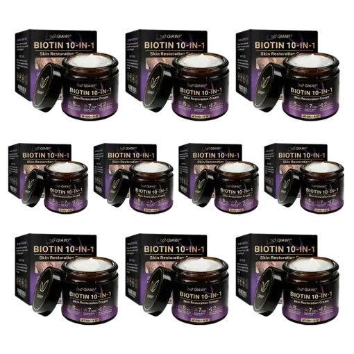 QIAWI® Proprietary Biotin Blend1 Skin Restoration Cream combines advanced research and powerful ingredients like Biotin to rejuvenate and repair your skin. This formula boosts skin elasticity, reduces fine lines, and improves texture and tone, with up to 20 times the potency of traditional skincare. Packed with natural bioactive compounds, it hydrates, enhances collagen production, and restores firmness, while addressing uneven skin tone and dryness. Manufactured to U.S. and EU quality standards, this non-invasive, daily-use cream delivers visible results safely and effectively, maintaining youthful, radiant skin.