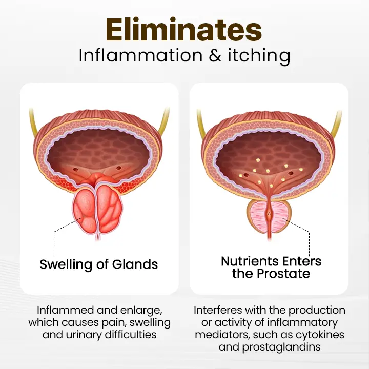 ✅ Reduced Inflammation: Helps alleviate inflammation in and around the prostate, providing relief from symptoms associated with prostatitis or benign prostatic hyperplasia (BPH).
