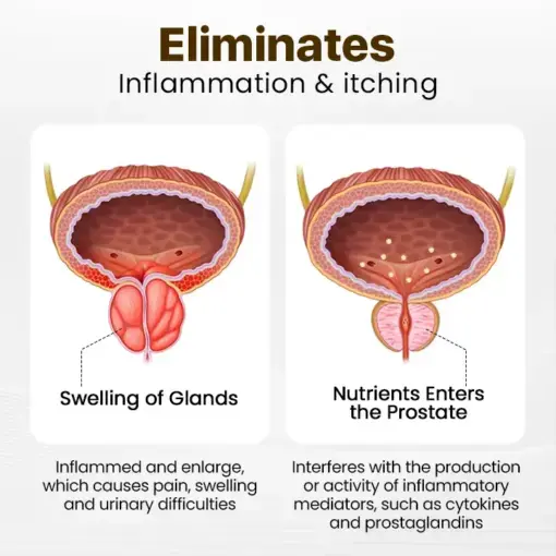 Reduced Inflammation: Helps alleviate inflammation in and around the prostate, providing relief from symptoms associated with prostatitis or benign prostatic hyperplasia (BPH).