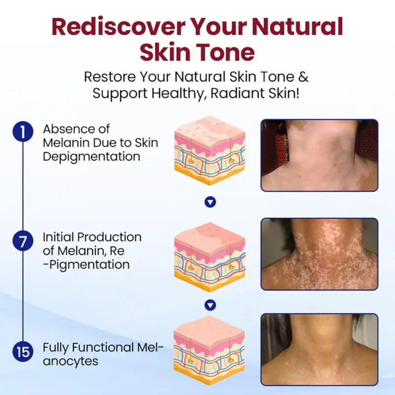 “I finally stopped hiding under long sleeves. The safe, gradual return of my natural pigment without skin thinning is nothing short of a miracle.” – Sarah M.