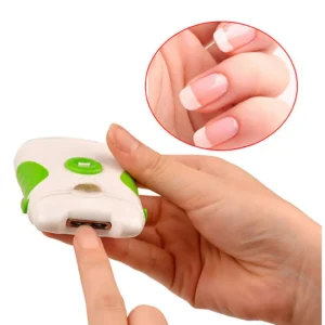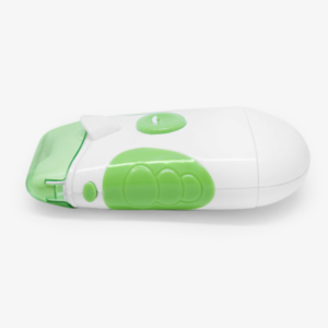 The rotating edges of this nail clipper at an astonishing 500 revolutions are enough to cut your nails in just a few minutes. Constructed with smooth and even edges. The built-in light helps you cut your nails perfectly every time, even in the dark! Also, the Roto Clipper is safe to touch indented curved sharp edges. Battery operated nail clipper and nail file all in one.