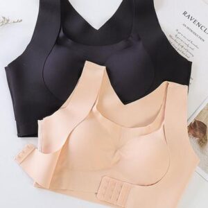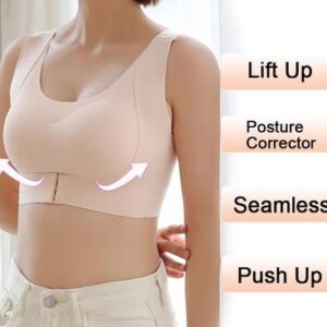 Seamless Front Buckle Support Bra lifts & supports sagging breasts, featuring adjustable front buckle hook-and-eye and crisscross back strap for an excellent push-up effect and posture correction.