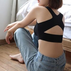 The extra wide criss cross back reinforcement design pulls shoulder backwards against rounded back but also strengthen breast’s supporting tissue & pectoral muscles.