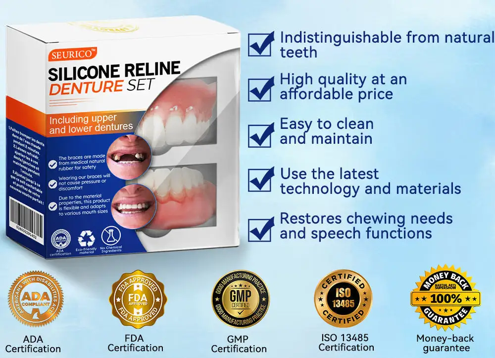 Seurico™ is dedicated to transforming lives through innovative dental solutions that enhance both your physical comfort and emotional well-being. Experience the freedom and confidence that so many others have already embraced with the Seurico™ Silicone Reline Denture Set. Join our growing community and discover how effortless it can be to enjoy a radiant, confident smile every day!