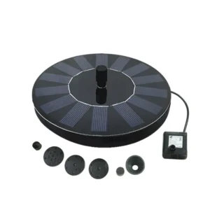 The solar-powered water fountain comes with a few different heads that offer different types of water streams that come from the pump.