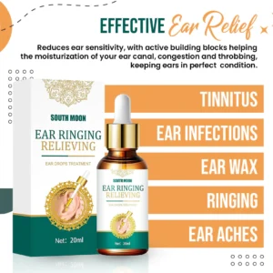 The South Moon Tinnitus Relief Ear Drops are medically tested, FDA certified, and effectively reduce the ringing, providing much-needed relief.