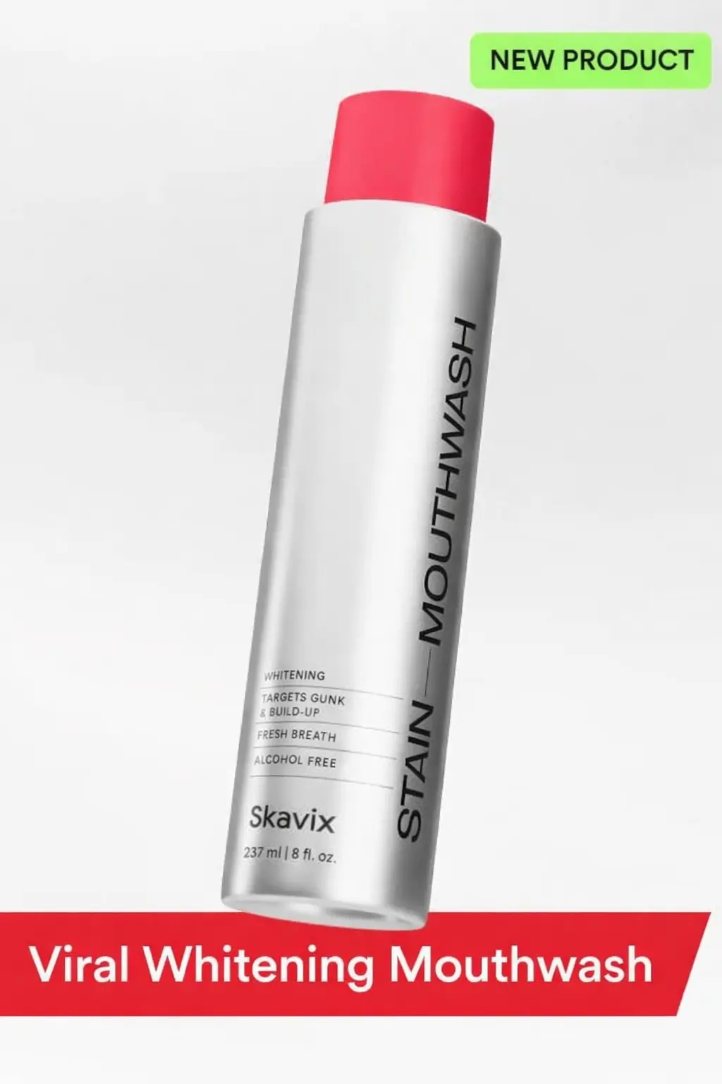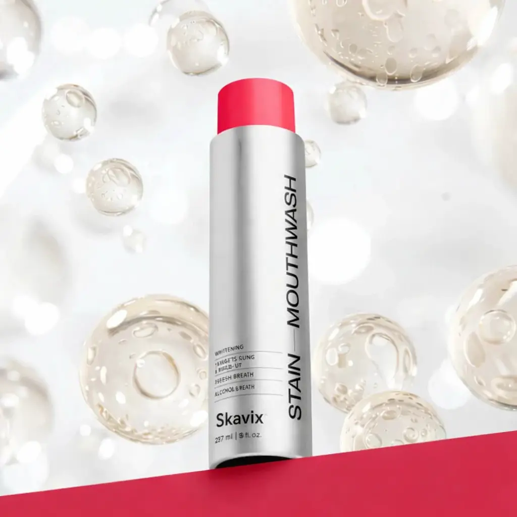 Skavix Whitening Mouthwash lifts hidden debris from your mouth and shows it back to you. The opaque formula interacts with oral debris, forming visible particles when you spit the mouthwash out. It’s instant proof of what brushing can miss.