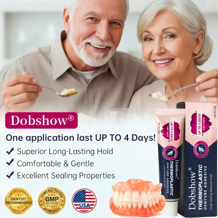 Say goodbye to loose dentures, sticky pastes, and daily reapplications. With Dobshow® Thermoplastic Denture Adhesive, you can enjoy days of effortless hold, all-day comfort, and complete peace of mind. Order now and experience the adhesive that truly holds up.