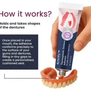 - That’s why we created ROSOPL® Thermoplastic Denture Adhesive—a modern solution designed to eliminate the hassle of wearing dentures. Our advanced heat-activated formula molds perfectly to your gums, providing a custom-fit seal that locks your dentures in place for up to seven full days. No mess, no slipping, and no more holding back your smile.