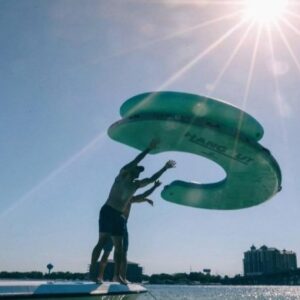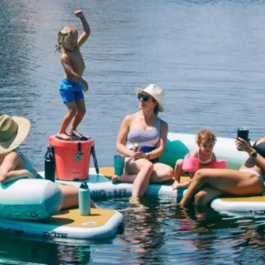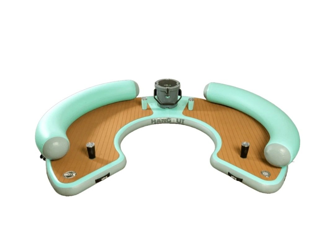 This Giant Curved Inflatable Dock Holds Up To 6 Adults and a Cooler