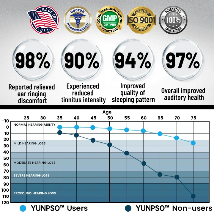 Safe & Expert-Tested – YUNPSO™ is developed with cutting-edge Neuroxis Therapy, rigorously tested by audiology specialists to ensure safety and effectiveness in reducing tinnitus symptoms.