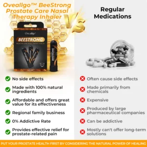 Q: How does Oveallgo™ BeeStrong improve prostate health? A: The nasal inhaler delivers bioactive compounds directly into the bloodstream, reducing inflammation and supporting normal prostate function.