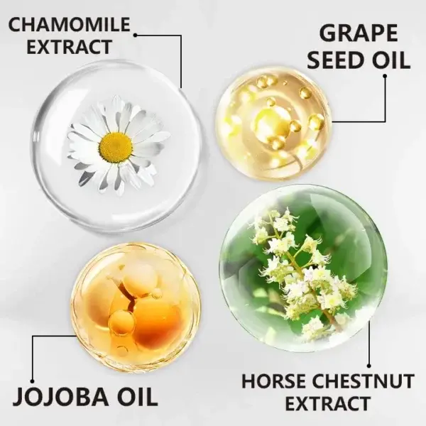 - Chamomile ExtractFunction: Natural Anti-InflammatoryBenefit: Reduces inflammation and soothes irritated skin, easing the pain and discomfort of varicose veins. Provides relief from the burning and throbbing sensations that often accompany vein issues.