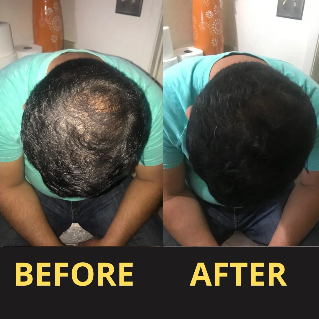 Drag the slider to see how Yagoo visually covers thinning areas with a waterproof hair concealer,creating a natural, sweat-resistant fuller hair look I after about 30 minutes.